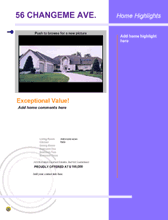 property feature flyers you use in business everyday. Exactly like the paper ones you presently use, only in digital data entry PDF format! Enter your information once, then simply preview and select the best flyer! Reusable flyers are simply a untouchable business tool. |